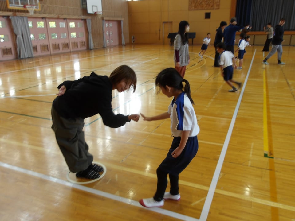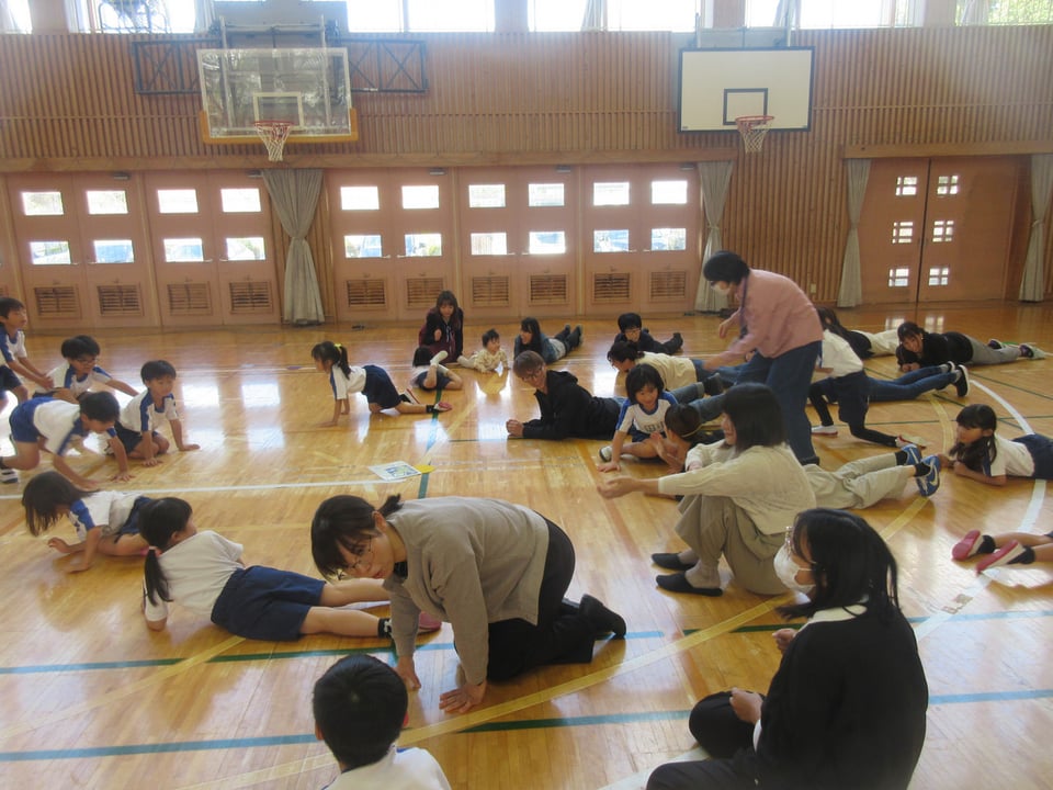 10月28日(火)に1年生の親子ふれあい活動がありました。1年生は体全体を使っての運動遊びです。子どもの発達段階に応じた運動遊びの普及活動を行っておられる 講師の和田康夫先生から、いろいろな遊びを教えていただきました。体全体を使ってのじゃんけん、ゾンビ鬼ごっこ、動物が進化していく進化じゃんけん、新聞紙で棒を作っての遊び等々・・・親子でたくさんの遊びを楽しみました。あっという間に時間が過ぎていきました。