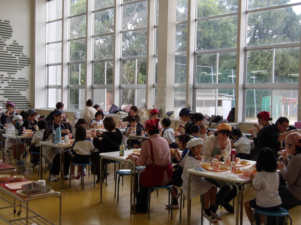 思い切り体を動かした後は、給食です!給食試食会ということで、保護者の方も一緒に給食を食べていただきました。メニューは、大人気のチキンチキンごぼうと、けんちん汁です。思い出に残る1年生のふれあい活動となりました。