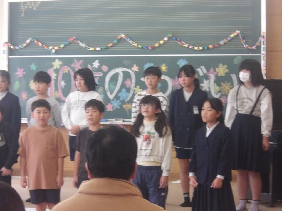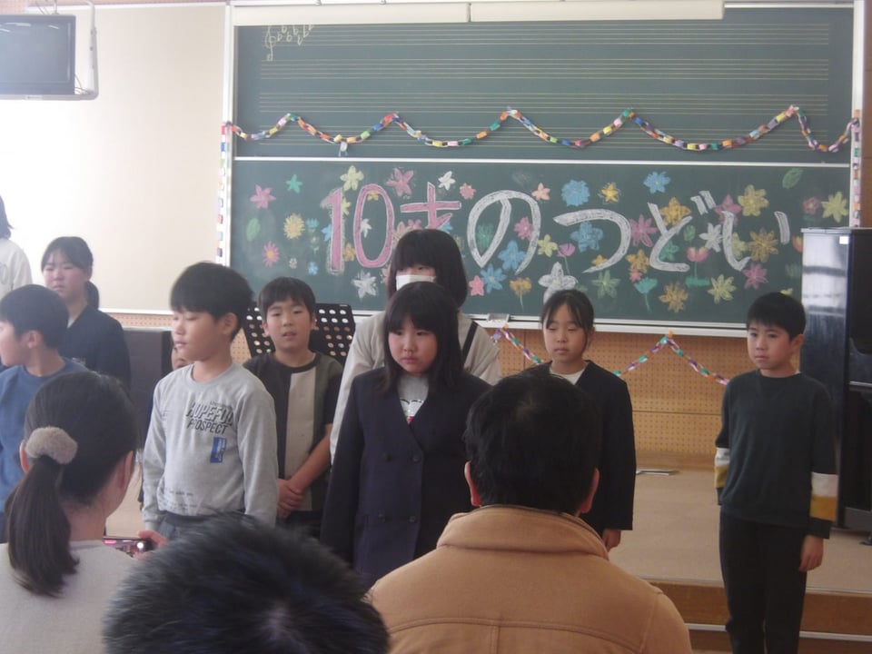 4年生が「10歳のつどい」を行いました。朝から会場の飾りつけや歌の練習に取り組む4年生。5時間目の本番では一人ひとりが家族への感謝の気持ちや将来の夢などを堂々と発表しました。その後、「アイノカタチ」のメロディーに自分たちで考えた歌詞をのせて合唱をしました。お家の方へ感謝の気持ちを伝えるために、一つ一つの言葉をみんなで考えて4年生みんなで作り上げました。ありがとうの気持ちがたくさん詰まった心温まる素敵な歌詞でした。感極まって涙が出る子もいれば、嬉しそうにお家の方からのお手紙を読む子もいて、本当に素晴らしい「10歳のつどい」になりました。