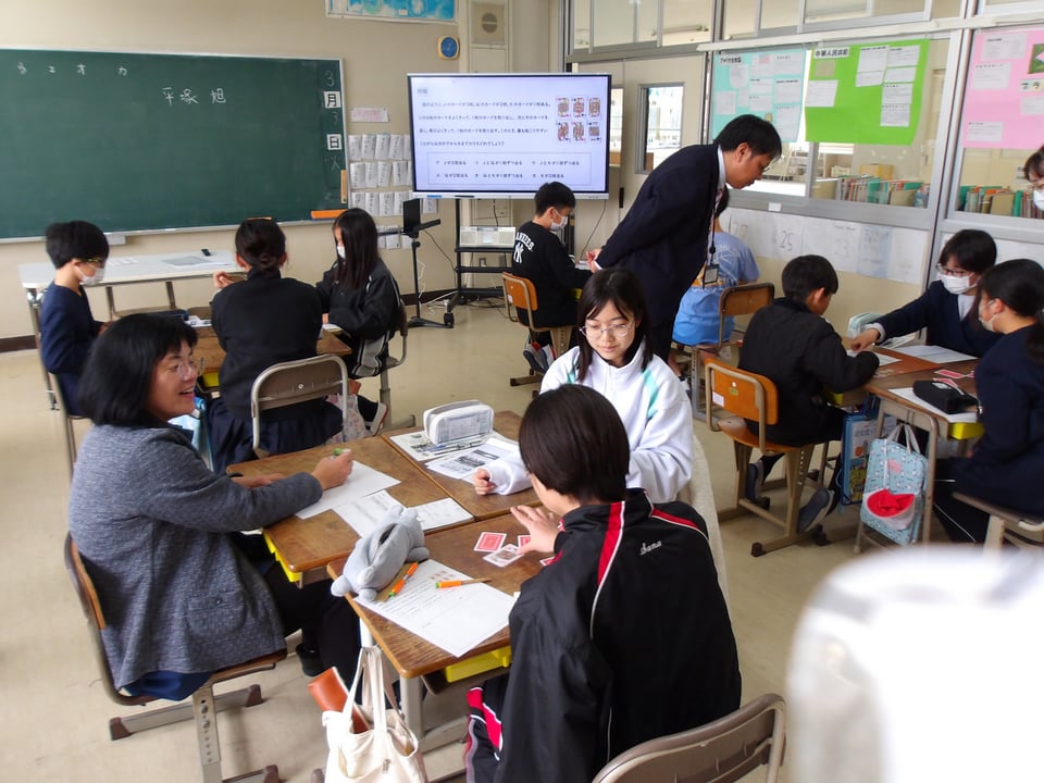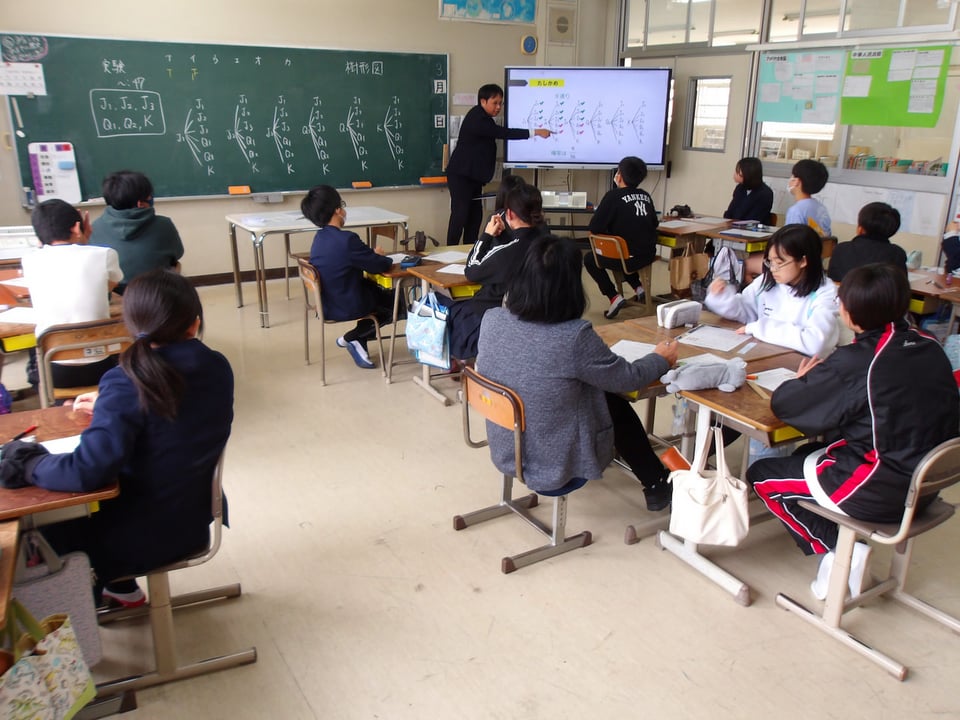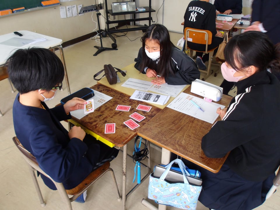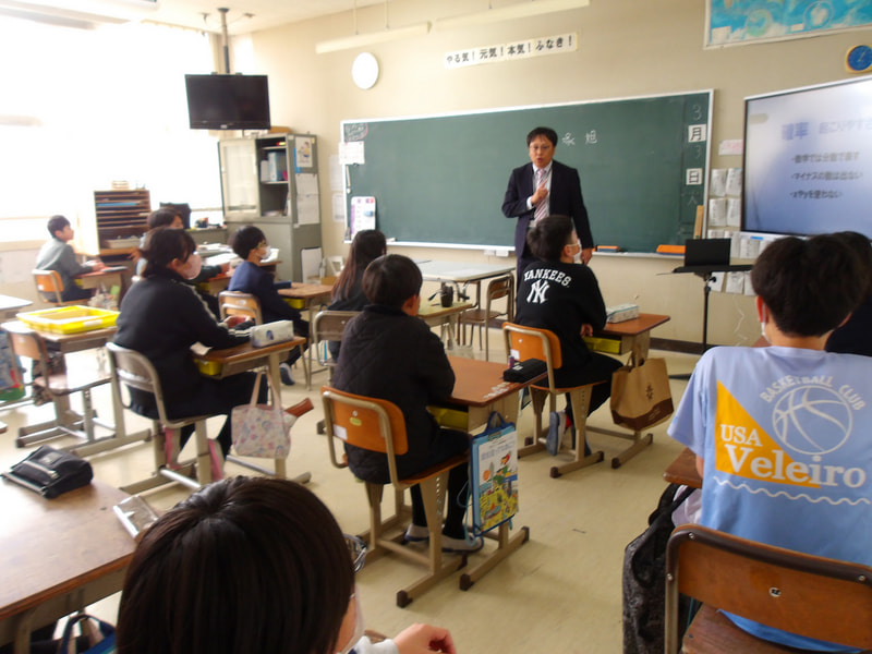 3月3日に宇部市教育委員会の平塚先生が、6年生の学級で数学の授業をしてくださいました。平塚先生は、中学校の数学の先生です。6年生は「中学校の数学って難しそう・・・」「数学は算数とどこがちがうのかな?」と最初は少し不安そうでしたが、平塚先生の授業が始まると、あっという間に数学の不思議な世界に引き込まれていました。今日はトランプを使った確率の勉強で、最初は、答えを予想して、次に実際に試してみて、最後は樹形図を書いて証明をしました。最後に平塚先生から、「中学の数学が数楽になるようにがんばってください!」とメッセージをいただきました。中学校へ向けて、また楽しみが増えたようです。平塚先生、ありがとうございました。