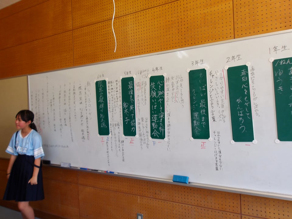 4月27日に代表委員会がありました。議題は、運動会のスローガンについてです。各クラスで話し合って出たスローガンをもとに4~6年生で考えました。全校児童が分かりやすい言葉か、言いやすいスローガンか・・・船木小の運動会にふさわしいスローガンになるように、一生懸命に考えて意見を出し合ってました。さすが高学年。色々な視点から意見が出ていました。そして、決まったスローガンは、「最後まで 笑って輝け 船木っ子」です。早速5月から運動会の練習が始まります。111名が力を合わせてがんばります。お楽しみに!