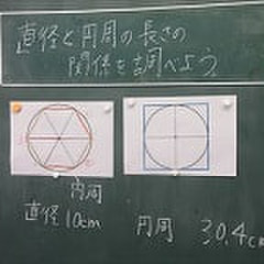 5年生が、円の直径と円周の関係を調べていました。このあと円周率、円の面積・体積へと学習が進んでいきます。おなじ頃、2年生…