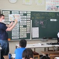 今年度はALTの先生もかわりました。 コーディ・メリット先生。アメリカの方です。 今日は3年生と5年生に、楽しく外国語…