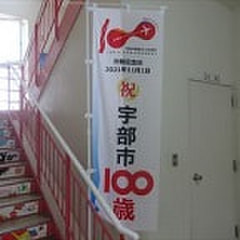 「宇部市100歳」の、のぼり旗が届いたので設置しています。また、令和3年度の学級写真の掲示もできました。10月の参観日…