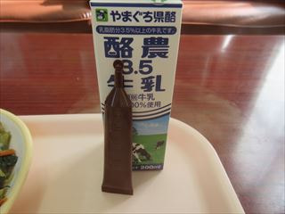 牛乳が瓶から紙パックに変わりましたから、ミルメークはもう出ないのかな?と思っていたら、液体のミルメークが昨日の給食につきました。
