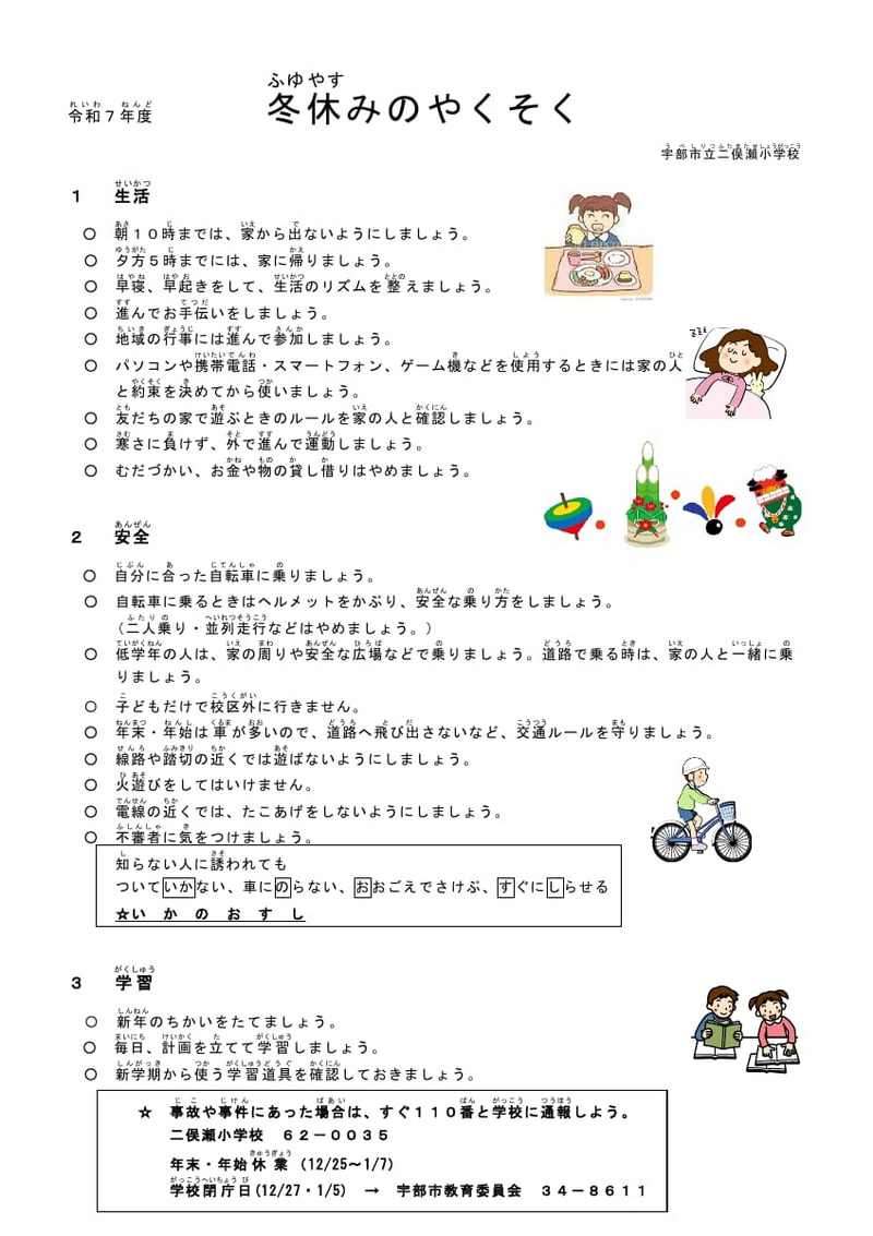 12月25日、今日からいよいよ冬休みです。約束を守って、楽しい楽しい冬休みを安全に過ごしてください。
