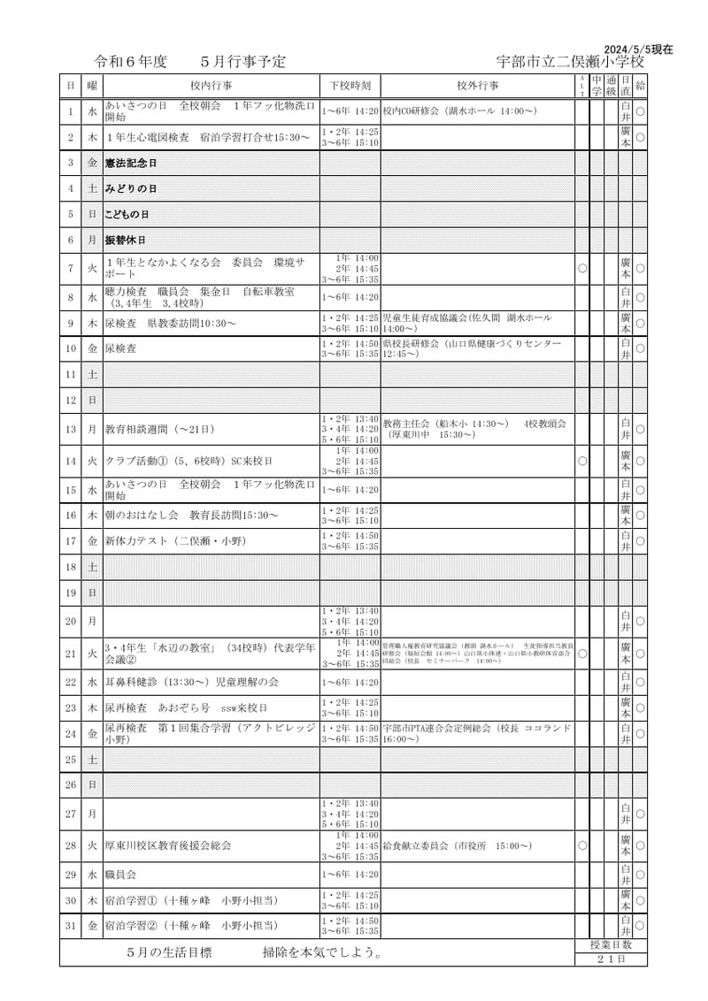> 令和6年度 5月行事予定