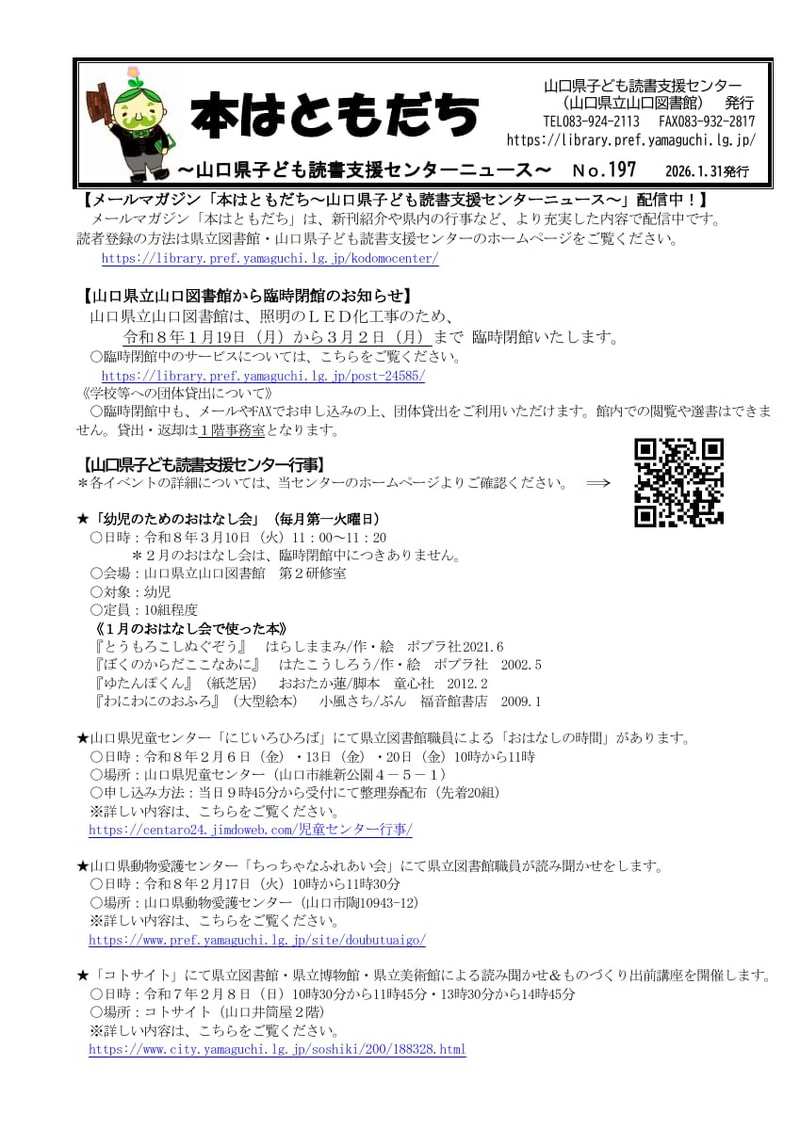 > 山口県子ども読書支援センターニュース「本は ともだち」