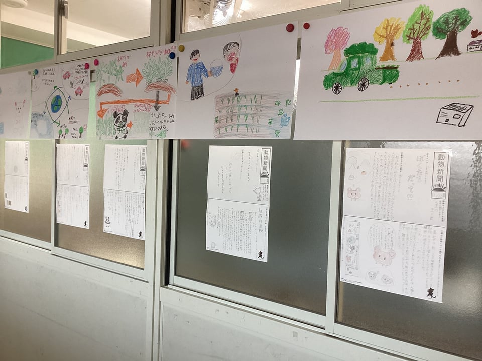 5・6年生は環境教育出前講座「世界動物かんきょう かいぎ」を実施しました。その後の活動で、自分がなりきった動物の気持ちを表現したポスターと「動物新聞」の仕上げを教室前に掲示しています。子どもたちが学んだことを、しっかりと振り返ることができました。