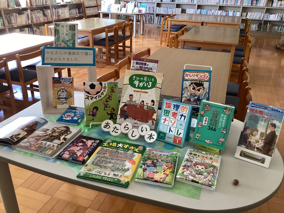 二俣瀬っ子が選書会で希望した本が図書室に入りました。下の写真のように、新刊コーナーができていますので、ぜひ手に取って読んでみてください。地域の皆様方も、地域開放の日などを利用して、学校にお越しいただき、新刊の本をはじめ、図書室の本をご覧ください。よい本がたくさんあります!