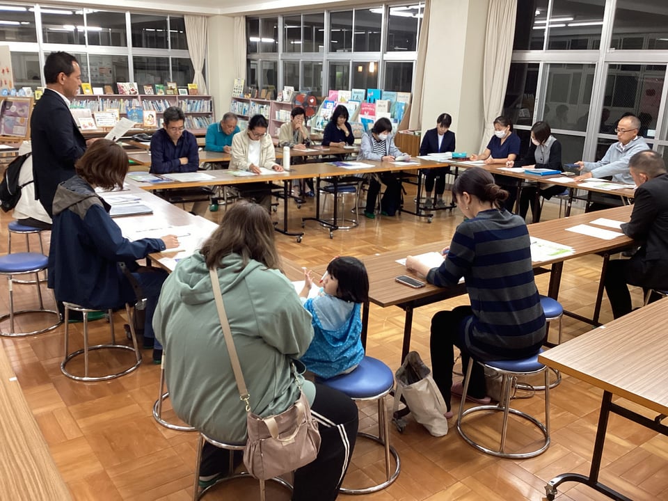 10月24日、「二俣瀬っ子ここから会」総会を開催しました。初期メンバーとして、育友会の保護者のみなさんと、学校運営協議会委員の一部の方々にお集まりいただきました。ここでは、「二俣瀬っ子ここから会」の組織や規約等について協議していただき、承認をもらいました。これで正式に「二俣瀬っ子ここから会」の発足となります。これから、特認校利用者促進に向けて、いろいろな取組・催し物を企画運営していきます。学校の強力な応援団です。