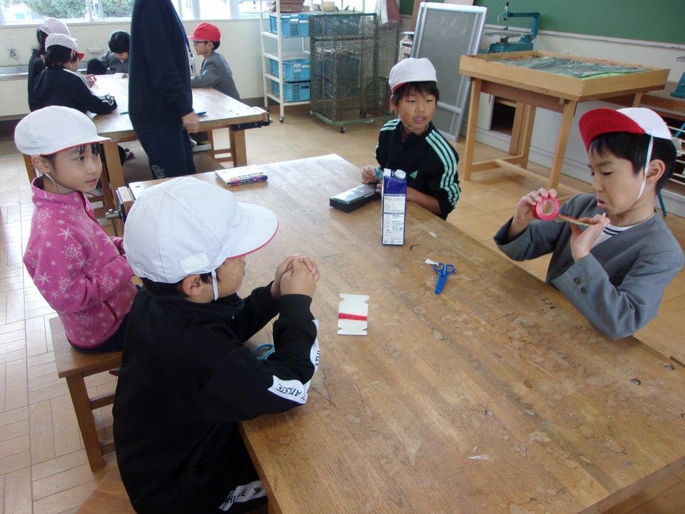11月29日、北部三校(小野小・厚東小・二俣瀬小)1・2年の集合学習を、二俣瀬小学校を会場に行いました。集合学習①は、1・2年合同で体育「ドッジボール」を楽しみました。子どもたちは、たくさんの同学年で行うドッジボールを楽しみにしていたので、大喜びでした。集合学習②では、1・2年で分かれて、1年生は外国語活動「クリスマスツリー作り」を、2年生は生活科の学習で「パッチンかえる作り」を、行いました。どちらの学習も最後には作品が完成させてとてもうれしそうでした。