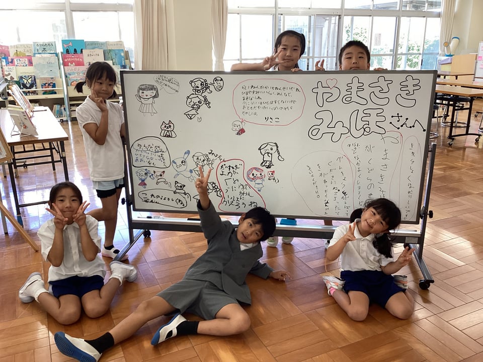 10月7日の就学時健診に向けて1・2年生が、来年度の入学児童に向けてメッセージパネルをかいてくれました。来年度の新入児は1名しかいませんが、きっと1・2年生のやさしい気持ちにうれしくなるはずです。新入生へのぬくもりいっぱいのメッセージや絵がとてもすてきでした。さすが、お兄さん・お姉さんです。みなさんの思いは、きっと伝わります!