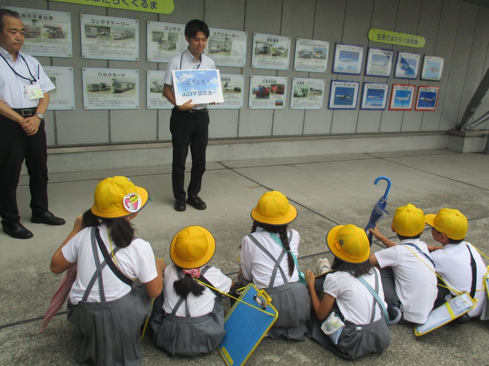 10月16日、1・2年生の社会見学の日です。子どもたちは、朝からもう待ちきれないという状況でした。目的地は「山口宇部空港」「山口県児童センター」「プラネタリウム」です。その様子を紹介します。
