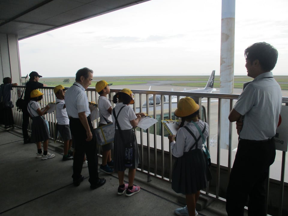 空港では、そこでのお仕事のお話を聞いたり、航空機が離発着する様子を見せてもらったりしました。いろいろな役割を分担しながら航空機を安全に飛ばすお仕事について学びました。また、間近で見る航空機は本当に迫力があります。その見学後には、大きな遊具施設で遊びました。雨に降られることなく、遊ぶことができて、子どもたちは大満足でした。