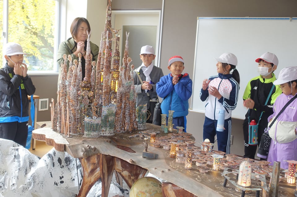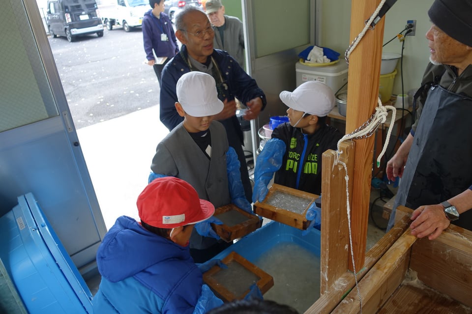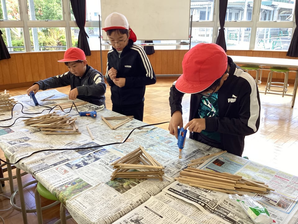 授業①では、総合的な学習の時間として、3年生は「竹細工」、4年生は「紙すき」を体験しました。どちらも小野地域の特色ある活動の一つです。3年生は、竹を使用したランプシェード作りに挑戦しました。子どもたちは竹の組み合わせ方を工夫しながら、集中してもの作りに没頭しました。うまくでき上がって、とても満足そうでした。4年生は、小野の紙すきに挑戦しました。トロロアオイのぬるぬる感を楽しみながら、紙ができるおもしろさ・不思議さを体感することができました。紙すきの後は、竹ラボにあるたくさんの作品にふれることができました。どちらの学年も小野地域の特色ある活動を楽しむことができました。