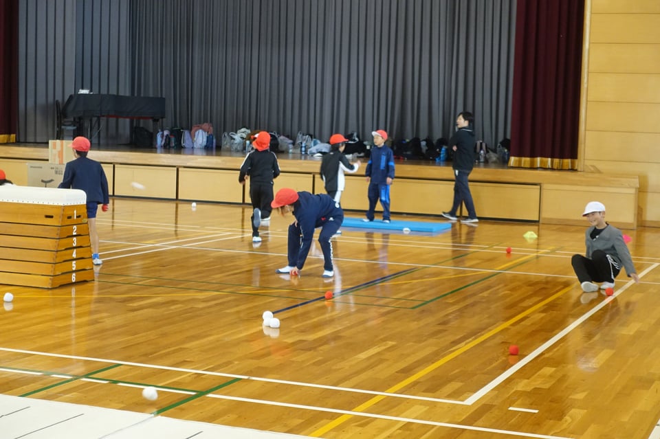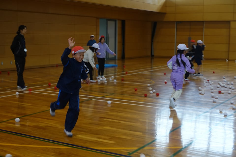 授業②では、3・4年合同の体育「ボール投げゲーム」を行いました。赤白玉を投げ合いながら、相手の陣地を奪い合うゲームだったようです。二俣瀬っ子は、日頃はなかなか経験できない、たくさんの同学年の友達と行うボール投げゲームを楽しむことができました。体育館全体を使うゲームで、思いっきり走り回ったり、赤白玉を的めがけて投げ合ったりすることができました。