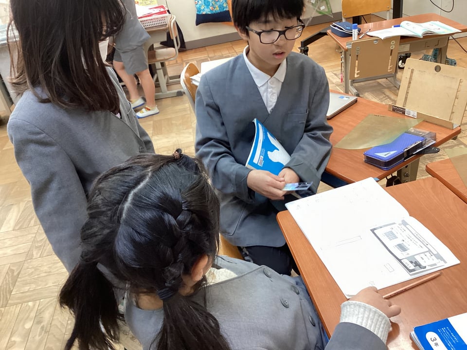 3・4年生による算数の自由進度学習の様子です。ここ最近、3・4年生の学びに向かう姿が変わってきました。分からないところが出てくると気軽に「ここ教えて!」と友達と関わり合う姿をよく見かけるようになりました。そして、「これはね・・・」と絵や図をもとにしながら教え合う姿が見受けられるようになりました。また、自分が分かったことを互いに説明し合う姿もよく見られるようになりました。友達と関わり合いながら学んでいく学び方が定着してきています。このように、みんなで学び合いながらともに高め合っていく姿はとても重要です。自分の考えをアウトプットする姿勢をこれからも大切にしてくださいね。