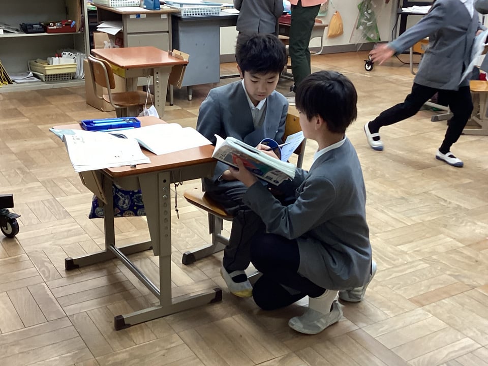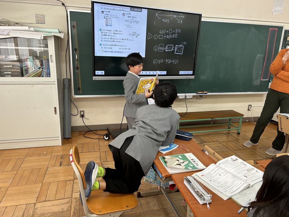 3・4年の算数学習に取り組む子どもたちの様子です。どちらの学年の子どもたちも、仲間に自分の考えをしっかりと伝えようとしています。このような教え合い、学び合う子どもの姿を大切にしています。学年のまとめの時期ですが、子どもたち同士が関わり合う場面も重視しながら、みんなが自信をもって進級していくことを願っています!
