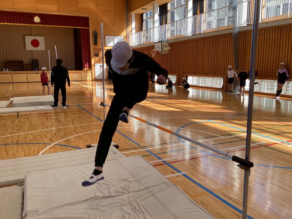 3・4・5・6年による合同体育「高跳び運動」の学習の様子です。本校は小規模校なので、3~6年合同で体育を行い、できる限り多くの運動やゲームにふれる機会を多く設定しています。高跳び運動や走り高跳び運動についても、中学年に合わせてゴム跳びから始めたり、高学年に合わせてバーを用いた走り高跳びに挑戦させたりしています。中・高学年のみんなで、「はさみ跳び」による高跳び運動を楽しむことができました。