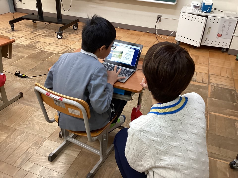 最後に、本日学んだことを生かして、自分たちのプレゼン1枚を改善する活動を行いました。子どもたちは、文字の大きさや色、量などを工夫した1枚を改善することができました。KRYのみなさんからは、アドバイスしたことを確実に生かしているすばらしさを価値付けていただきました。さて、どんな発表にリニューアルされていくか、これからが楽しみです。KRYのみなさんも期待されていますよ!