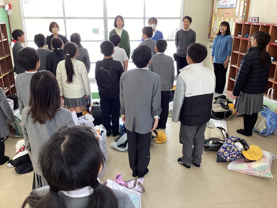 3月19日、一斉下校の会を行いました。まずは、1年間お世話になった先生方や友達に一人ひとり「一年間ありがとうございました」のお礼のあいさつを言い合いました。もちろん、学童保育でも家庭でも、この区切りのあいさつをすることを課題としました。さて、二俣瀬っ子のみなさんはできているでしょうか?次に「交通安全の合言葉」をみんなで唱和しました。最後に、先生方と一緒にあいさつをして、いよいよ下校です。