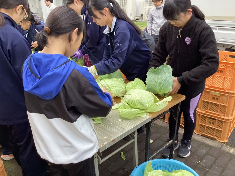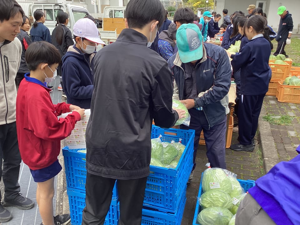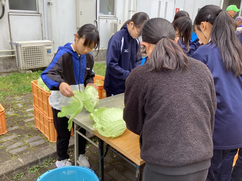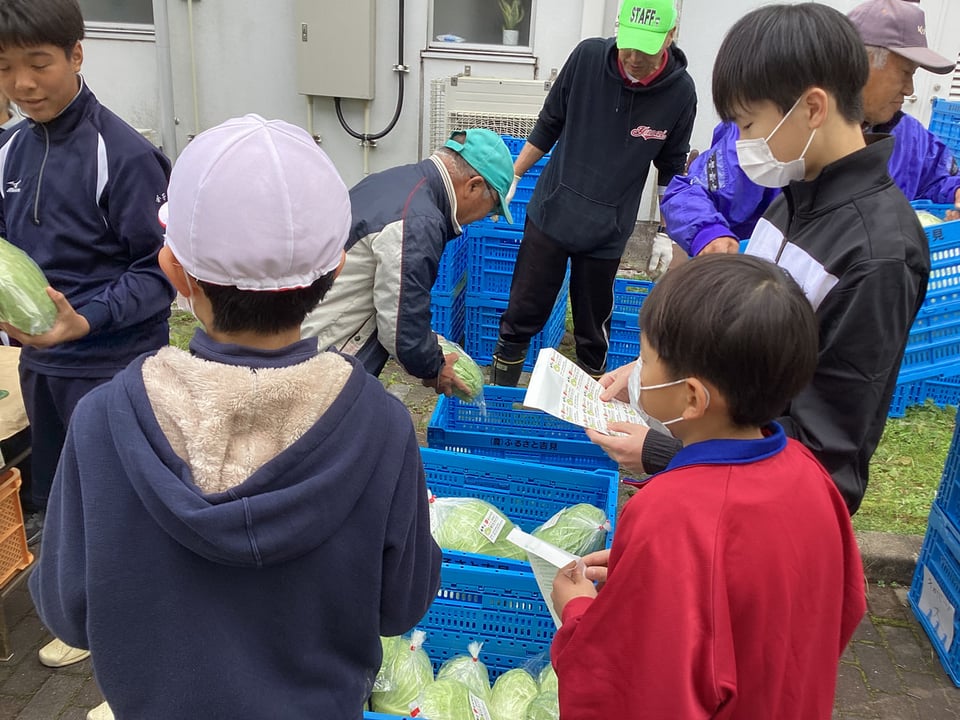 <6年総合的な学習の時間「中学生と一緒に『夢キャベツ』の収穫・販売準備をしよう!」>