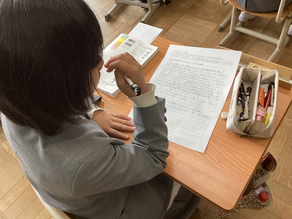 5・6年生は国語の物語文のまとめの学習を行いました。学んだ物語文を一文でまとめたり、物語文から伝わってきた自分の考えを記述したりする学習に挑戦しました。さすが5・6年生です。プリントびっしりに自分の考えをまとめる姿が見受けられました。書く力もこの2学期に大きく飛躍しているようです。