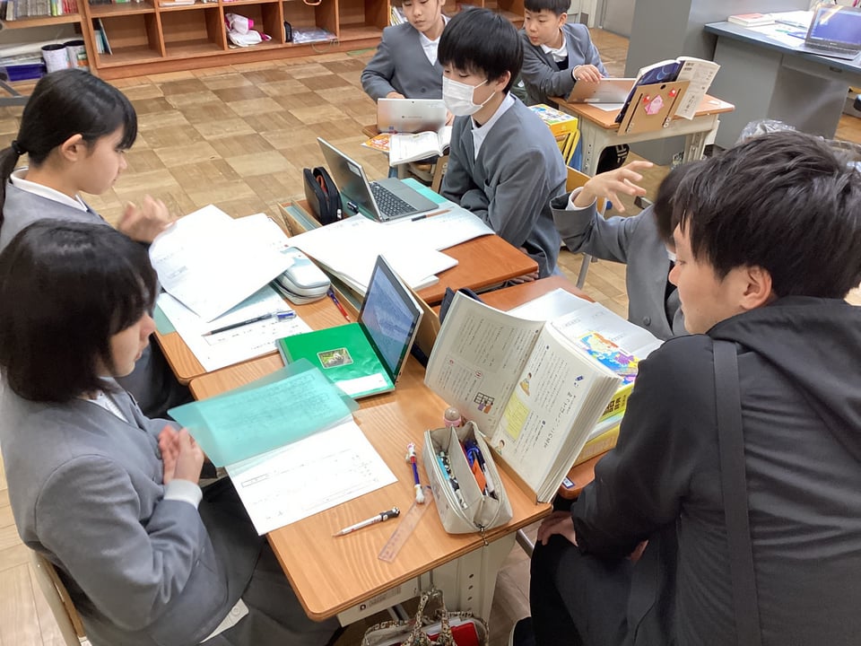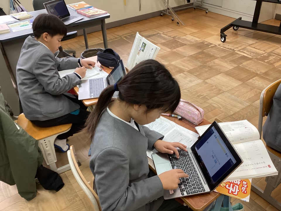 5・6年生は国語で「詩の学習」に取り組んでいます。詩を読んで疑問に思ったことを出し合い、みんなに共通する「問い」について、互いに対話しながら自分たちなりに詩を解釈していくという学習です。子どもたちは、学習する「詩」に関する「問い」をもち、対話しながらその「詩」を解釈し、自分なりの考えをまとめるという主体的な学びが確実に身に付いてきました。自分たちの「問い」を解決していく学び方が育ってきていることに感心します。