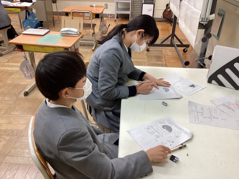 5・6年生の算数では、本時の目標を自分が設定すると子どもたちはどんどん自分たちだけで学習を進めていく姿に感心しています。5年生は算数「割合のグラフ」に取り組んでいます。タブレット端末のテキストに沿って割合のグラフの読み取り方やかき方を学びながら、課題をクリアしていきます。6年生は「算数学習のまとめ」に取り組んでいます。タブレット端末のテキストに挑戦したり、発展的な問題に友達と協力しながら挑戦したりしています。主体的・協働的に学ぶスタイルが身に付いている姿がとてもすてきです。