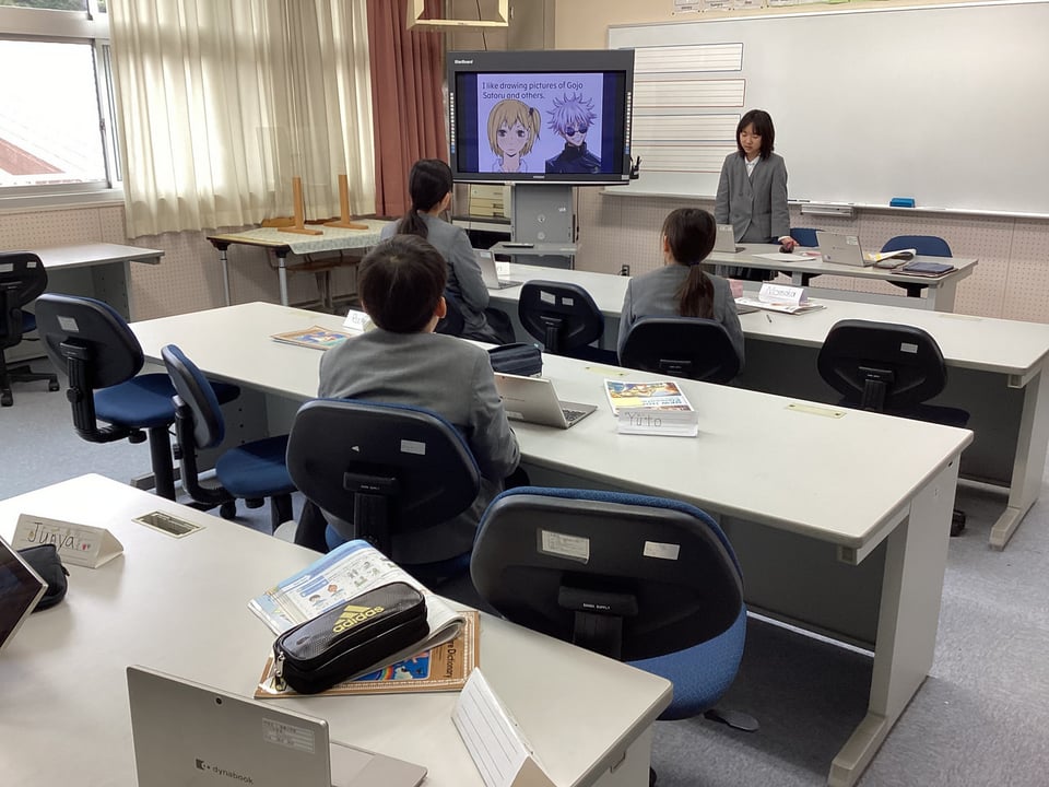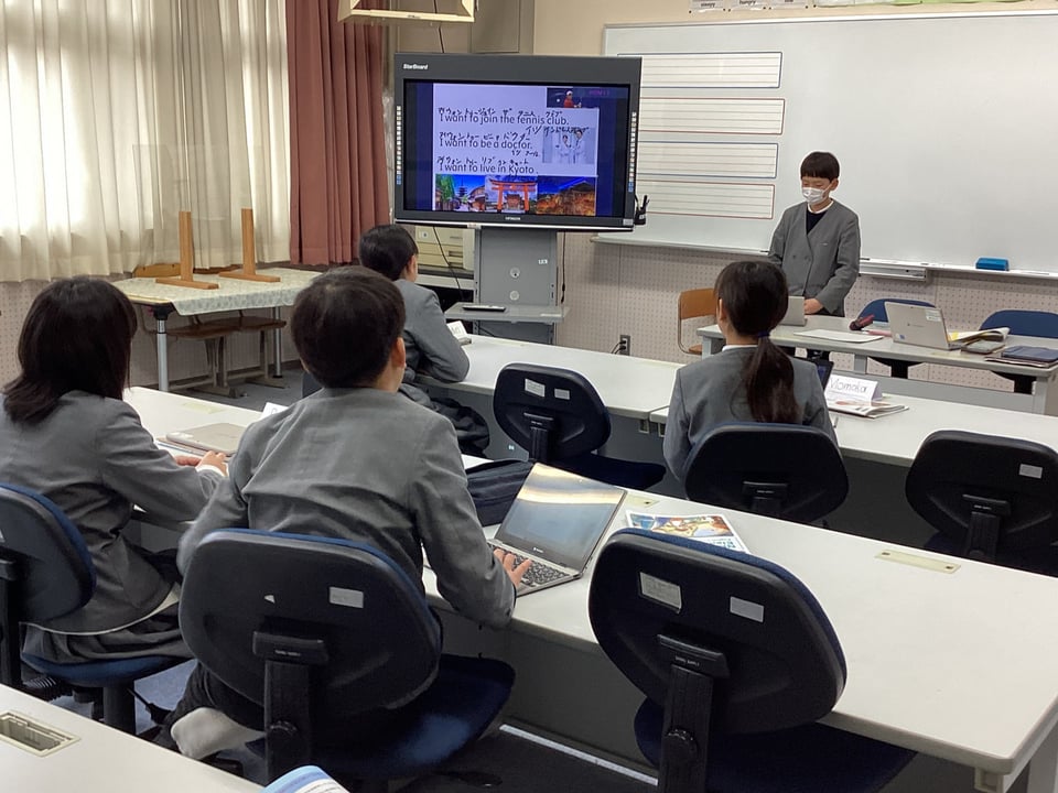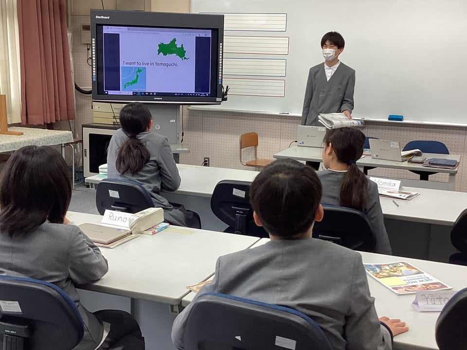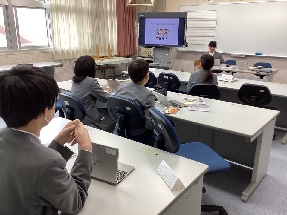 5・6年生は外国語科「入りたい部活動や将来の夢を紹介しよう!」の学習に取り組みました。事前に子どもたちが作成したパワーポイント資料を使って、自分が入りたい部活動や将来の夢を英語を用いて発表しました。さすがは5・6年生です。はっきりと英語を用いて、堂々と自分の思いを表現できることに感心しました。