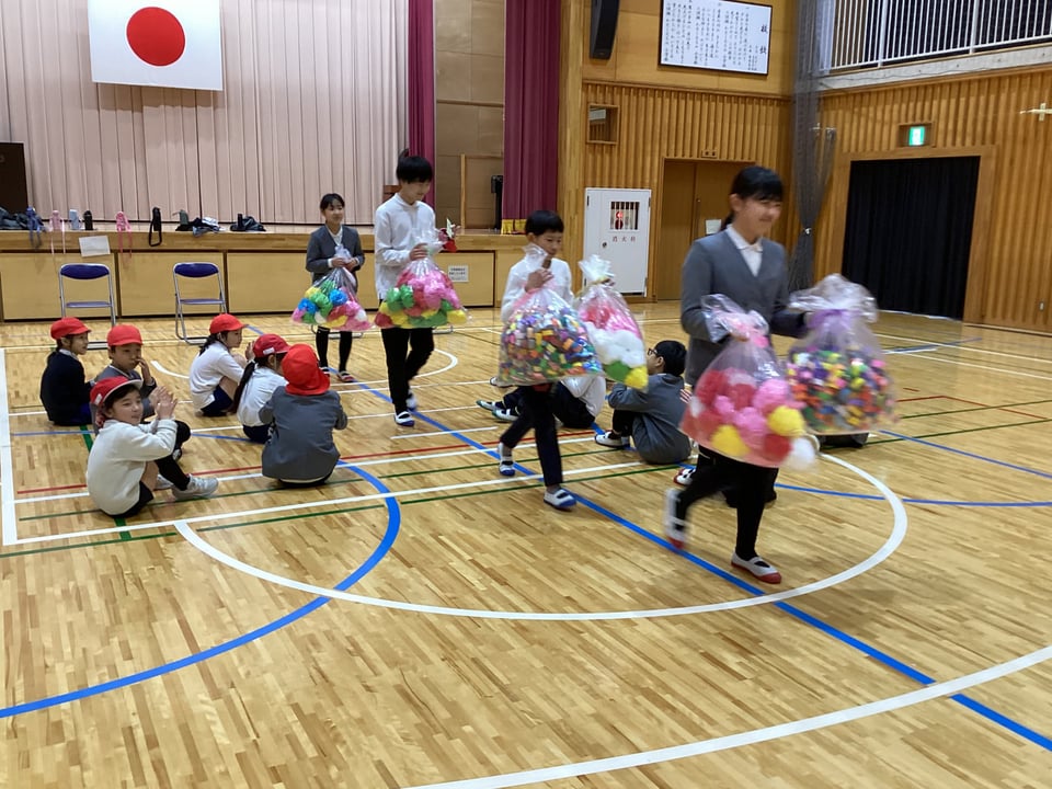 3月2日、「6年生を送る会」を行いました。この日までに、3~5年生が代表学年会議を行い、2名の5年生が中心となって準備を進めてくれました。会では、「長なわチャレンジ」や6年生リクエストの「ゾンビおにごっこ」を行い、みんなで楽しい思い出をいっぱいつくることができました。6年生も在校生も笑顔いっぱいの会となりました。みんなでたくさん遊んだ後は、在校生から卒業生へのプレゼント渡しです。恒例の「輪飾り」と「ペーパーフラワー」をたくさんプレゼントしました。卒業式にしっかりと活用していきます。最後には、6年生からお礼のあいさつがありました。