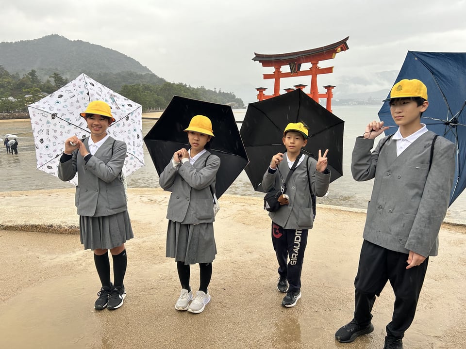 厳島神社を参拝しました。大鳥居を前にみんなで記念写真を撮ったり、健康・交通安全、学業成就祈願を、みんなでしました。