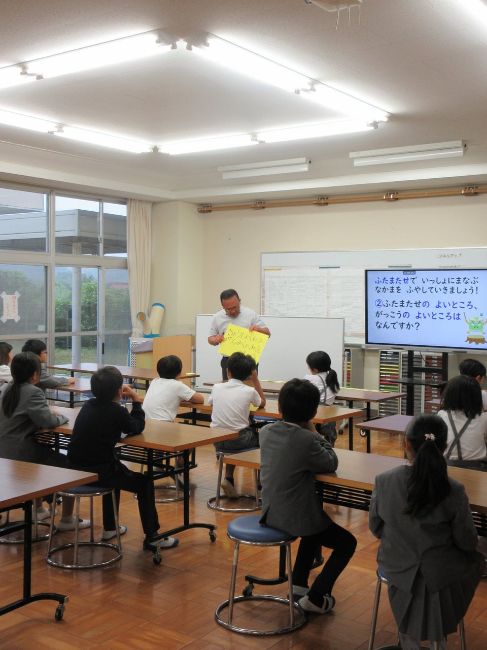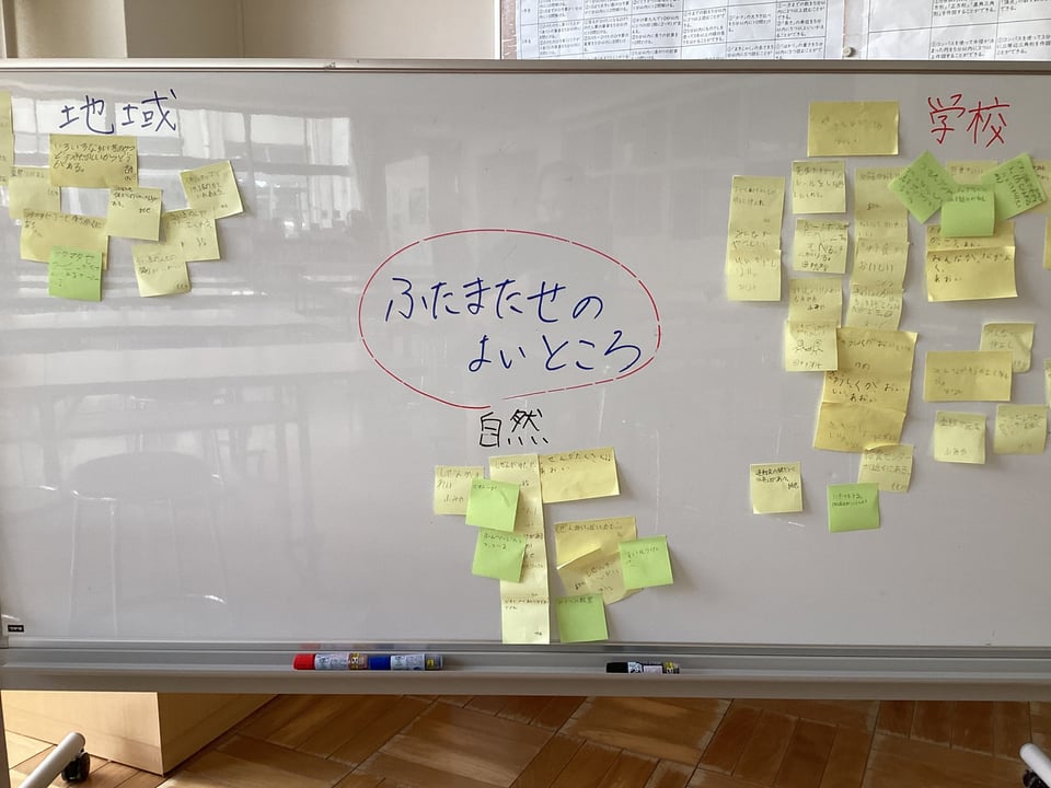 10月3日、CS子ども部会の第1回目を行いました。この子ども部会は、23日の全校児童参加の熟議に向けたものです。テーマは「特認校として、ともに学ぶ仲間を増やすために、自分にできること」です。この日は、「特認校とは何か」「二俣瀬小も特認校であること」を子どもたちに確認しました。そして、子どもたちの「いっしょに学ぶ仲間を増やしたい!」という心意気を確かめました。最後に、特認校で来てくれる仲間に「二俣瀬のよいところ」を紹介できるように、みんなで「二俣瀬と学校のよいところ」を付箋紙に書き出しました。本日は、ここで終了ですが、とてもすてきなことがありました。