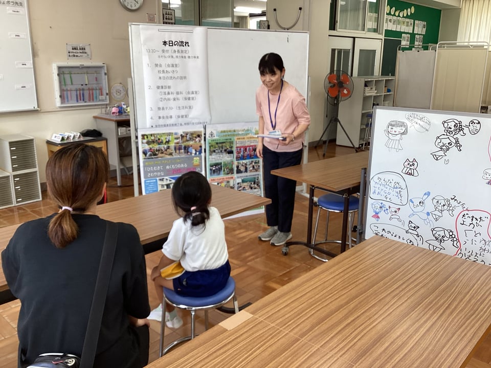 10月7日には、就学時健診を実施しました。来年度の入学児童は1名と少しさみしく感じますが、そんなことはありません。1・2年生の熱烈大歓迎メッセージボードがありますし、学校に到着されたときにはみんなのあいさつで出迎え、子どもたちとのお話会がすぐに始まりました。すぐに声を掛けられることで、新入児の緊張も少しほぐれたのではないかと思います。教頭先生や校長の話の後、すぐに健康診断が開始されました。1名の新入生でしたが、決して臆することなく、堂々とふるまえる姿に感心しました。これから、特認校としていっしょに学ぶ仲間が増えることを楽しみにしておいてください。