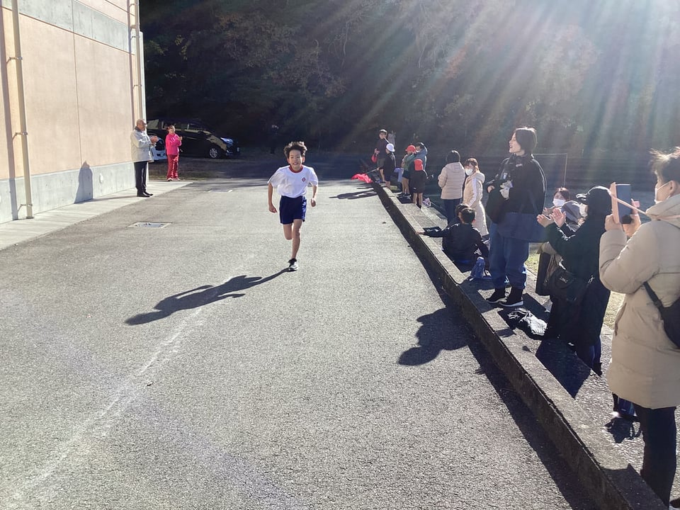 12月5日、快晴の中で校内持久走記録会を実施しました。たくさんの保護者・地域のみなさん、そして本日は特別ゲスト、保育園の年長さんと園長先生が応援に駆けつけてくださいました。本当にありがとうございました。二俣瀬っ子は、みなさんの声援を力にして、ゴールをめざして、全員が見事に完走することができました。持久走は、自分の弱くなりそうな心と勝負しなければならない運動です。自分の体調と相談しながら、自分のベスト記録に向かって最後までひたむきに走り抜く姿は、みんなとてもかっこよかったです。みんなの懸命な表情が輝いていました。保護者・地域のみなさん、子どもたちの背中を押す声援をありがとうございました。保育園のみなさんのかわいらしい応援も二俣瀬っ子の大きな力となりました。