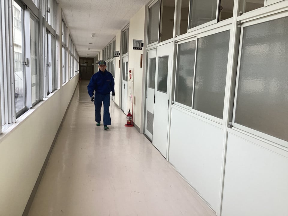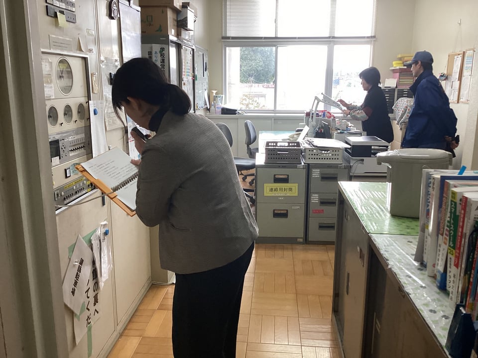 火災発生場所は、家庭科室です。非常ベルの後、出火場所を確認して、すぐに通報・初期消火をしました。そして、児童を安全な場所に避難誘導しました。それぞれの場所にいた児童は、教職員の指示のもと、すばやく体育館に避難することができました。
