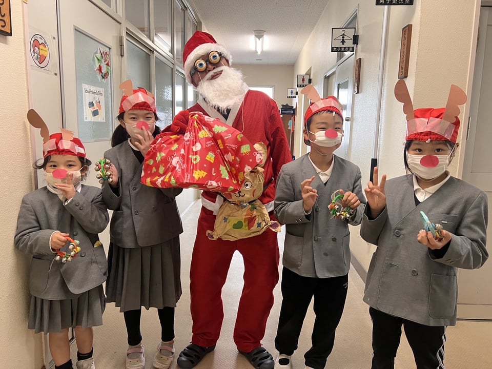 12月17日の給食は、クリスマスメニューでした。「カレーピラフ」「ABCスープ」「鶏肉の唐揚げ」「ブロッコリーのソテー」「セレクトケーキ」です。なんと、この日は、日頃からがんばっている二俣瀬っ子のために、かわいらしいトナカイと、なんだか奇妙なサンタクロースが、ケーキを届けに来てくれました。そして、みんなで楽しく、おいしくクリスマス給食を食べました。みなさんは、このトナカイさんとサンタさんが誰だか分かりますか?