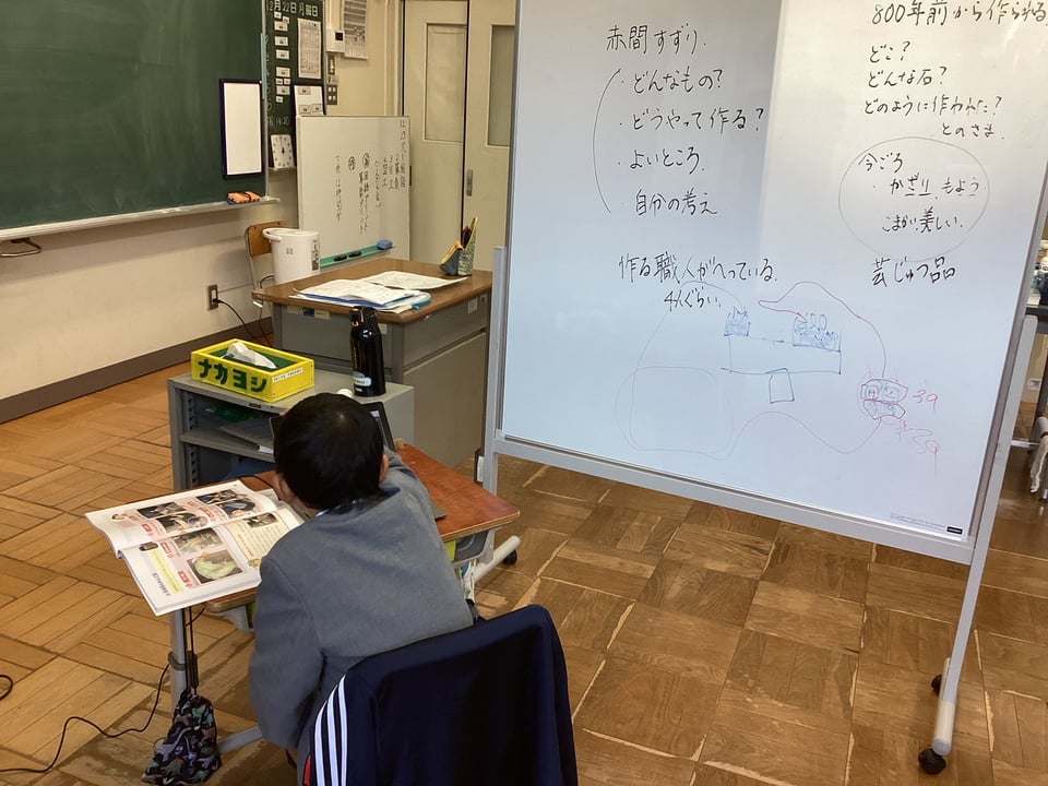 なかよし学級では、国語で「赤間硯ができるまで」について調べたことを報告する文章を書いています。写真や絵、図などを使って分かりやすくスライド資料にまとめているところです。完成が楽しみですね。発表会を行ってほしいと思います。