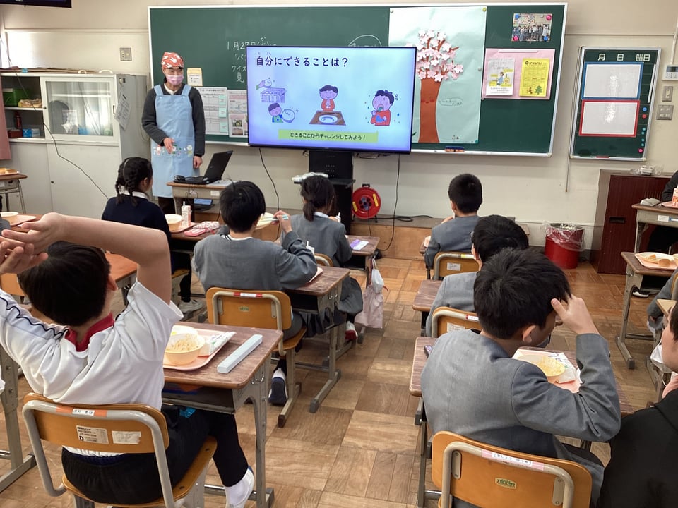 栄養教諭による講話「食料自給率アップメニュー&食品ロス」