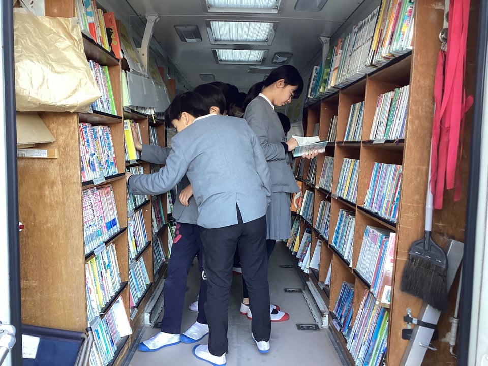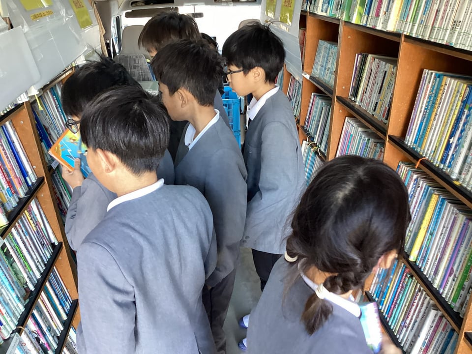 1月30日、今年度最後となる移動図書館「あおぞら号」がやって来ました。二俣瀬っ子は5冊もお気に入りの本を借りることができるので、いつもこの日を楽しみにしています。この「あおぞら号」の訪問が、読書週間のきっかけの一つになればと願っています。二俣瀬っ子のみなさん、しっかりと本に親しんでください。