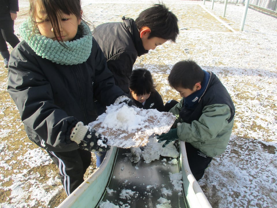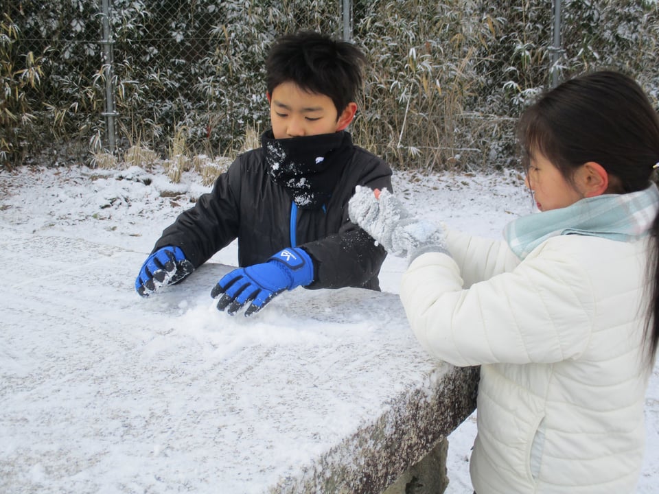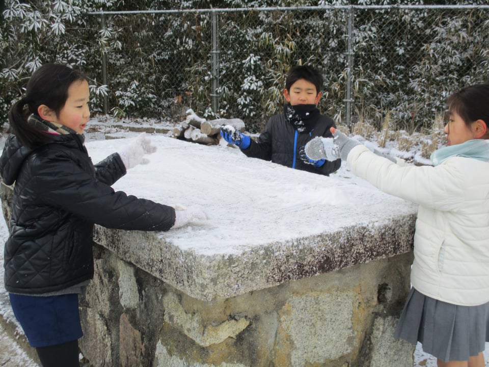 2月9日、今朝の早朝の気温は「-7℃」でした。雪は木の葉や枝、運動場に薄っすらと積もっている程度でしたが・・・。「子どもは風の子」とはよく言ったもので、1・2年生の子どもたちは、その極寒の中、雪が解ける前に「雪遊び」が始まりました。雪を集めて大きな雪だるまを作ったり、つららや氷を集めて遊んだりして、冬らしい遊びを楽しみました。1・2年生の子どもたちはみんな、はつらつとしています。やっぱり「子どもは風の子」です。元気が一番!