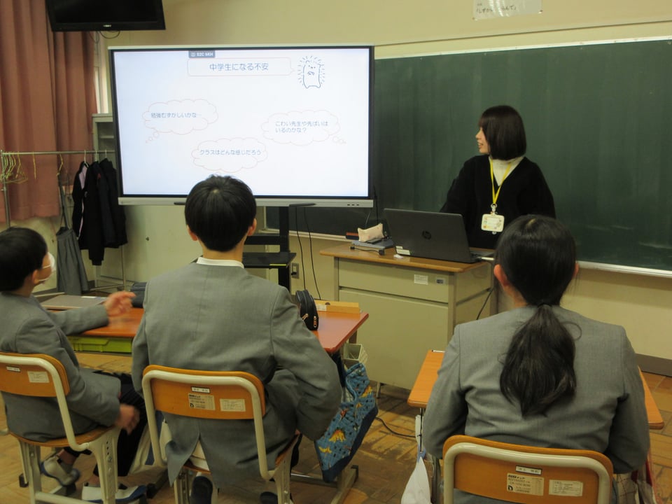 1月27日、SC(スクールカウンセラー)による「中学生に向けたソーシャルスキルトレーニング」を、6年生が行いました。この学習では、「中学生になる不安」や「小学校と中学校のちがい」、「中学生になる楽しみ」、「思春期等のいろんな変化が起こること」、「中学生としての自立に必要なもの」について話し合い、学び合いました。また、「相手との距離(パーソナルスペース)」について学んだ後に、「誰にでも話せる?話せない?」のソーシャルスキルトレーニングを行いました。ワークシートに自分の考えを書いた後に、みんなで互いの考えを語り合いました。