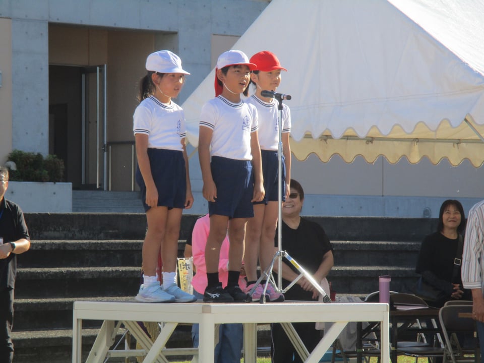 10月11日、雲一つない運動会日和の中、「学校・地域合同秋季大運動会」が挙行されました。早朝からのテントや用具等の準備へのご協力、本当にありがとうございました。今回は、開会式の様子を紹介します。