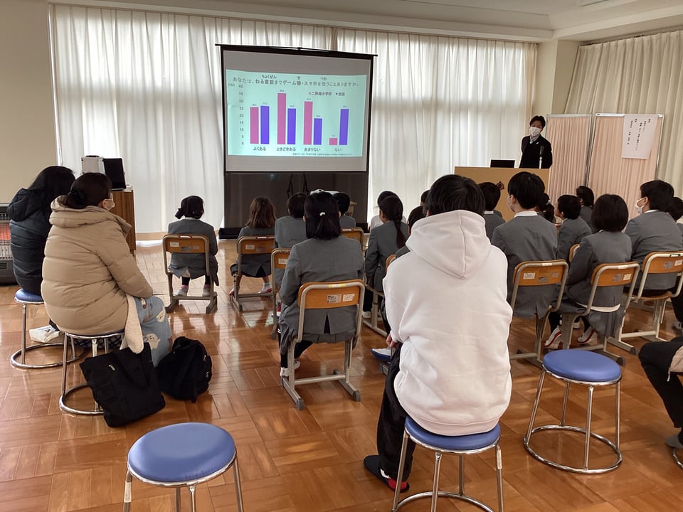 後半は、東洋羽毛の方を講師としてお迎えし、「睡眠の力を知ろう」という講演を行っていただきました。全校の子どもたちと保護者のみなさん、全教職員でお話をお聞きしました。睡眠が「元気」「勉強」「運動」の源になることを学びました。「寝る子は育つ」とよく言われますが、その科学的根拠に子どもたちは納得していました。運動やクイズをもとに楽しく学ぶことができました。驚いたのは、二俣瀬小の子どもたちの「メディアを見ている時間の長さ」と「寝る直前まで見ている割合の多さ」です。全国平均よりも多いという結果でした。この結果を踏まえて、ぜひ、ご家庭での約束づくりに生かしてください。これから、たっぷりの睡眠時間と、ぐっすりの質のよい睡眠をとるよう、心掛けましょう!睡眠パワーをしっかりと生かしていきましょう。ご参加くださった保護者のみなさん、ありがとうございました。