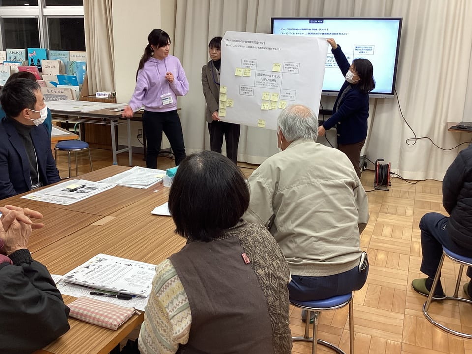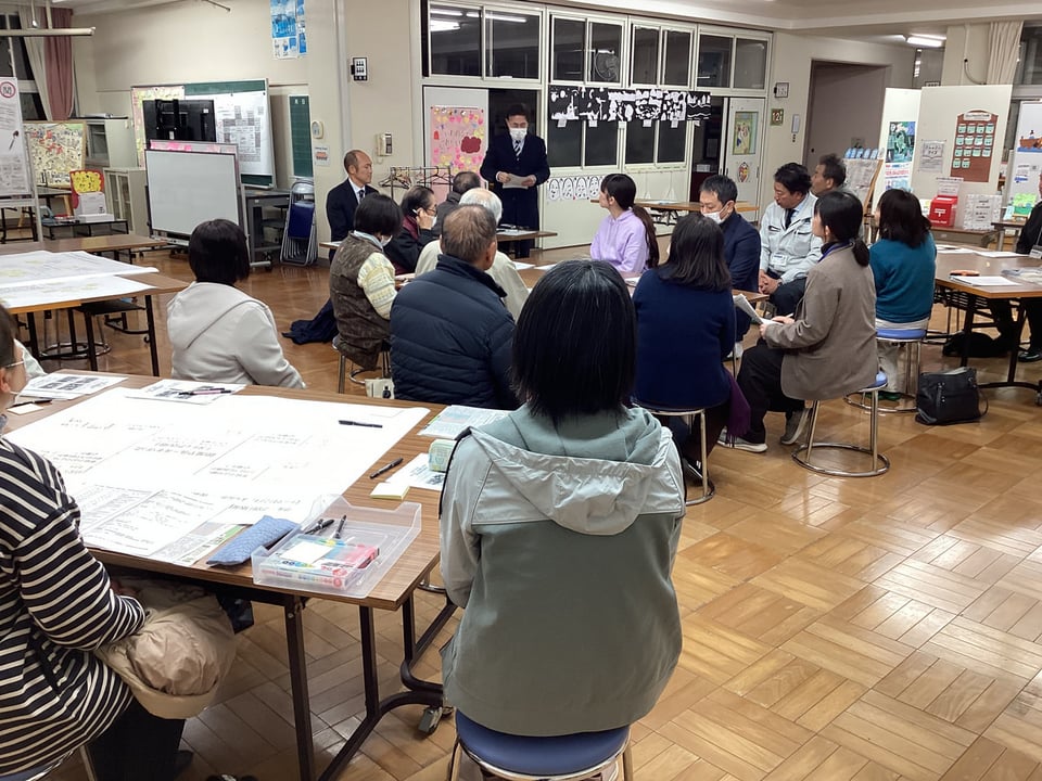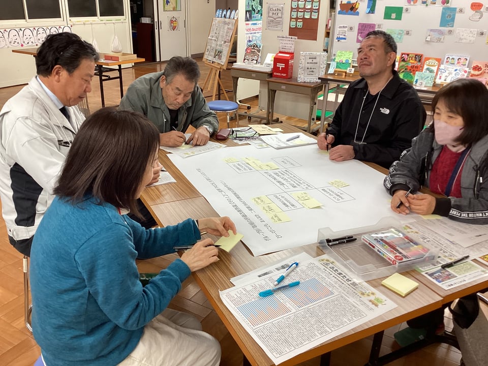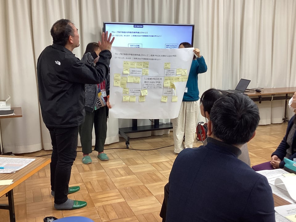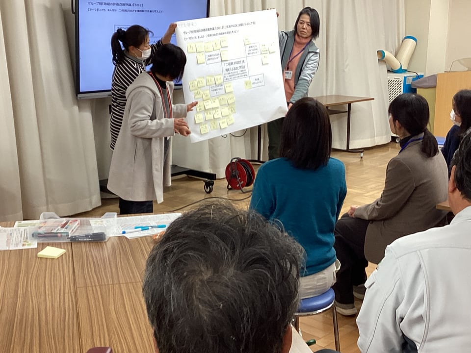 1月23日、第4回学校運営協議会を開催しました。今回は、学校運営協議会委員及び学校応援団、教職員による大人熟議です。テーマは、「『こども まんなか 二俣瀬』をめざす課題解決活動を考えよう!」です。後期学校評価アンケート結果の課題を共有し、焦点化した「まなび・せいかつ」課題についての協議を通して、取組を見直し、課題解決に向けた活動アイディアをたくさん出し合うことを目的としました。3つのグループに分かれて、「①『ふたまたせPRIDE』を育む『ふるさと学習』について」「②節度やルールを守った『メディア活用』について」、それぞれ熟議し、たくさんのアイディアや提言をいただきました。互いのグループで出た意見を共有し合い、講師の宇部市教委の先生方から指導助言もいただきました。