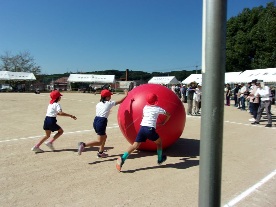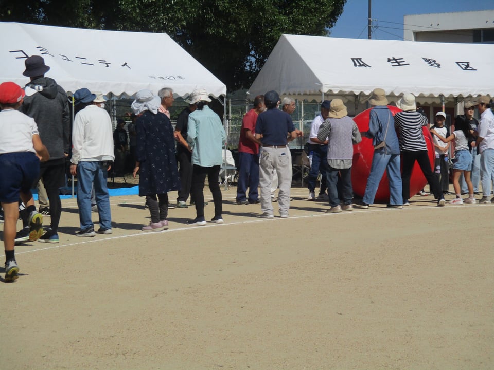 次の「大玉リレー」は、今年度より地域とのふれあい種目としました。これまでは学校の子どもたちだけでやっていましたが、途中の箇所に、地域の方々にも加わっていただきました。見ていてとてもほっこりする種目となりました。地域のみなさん、ご協力、ありがとうございました。