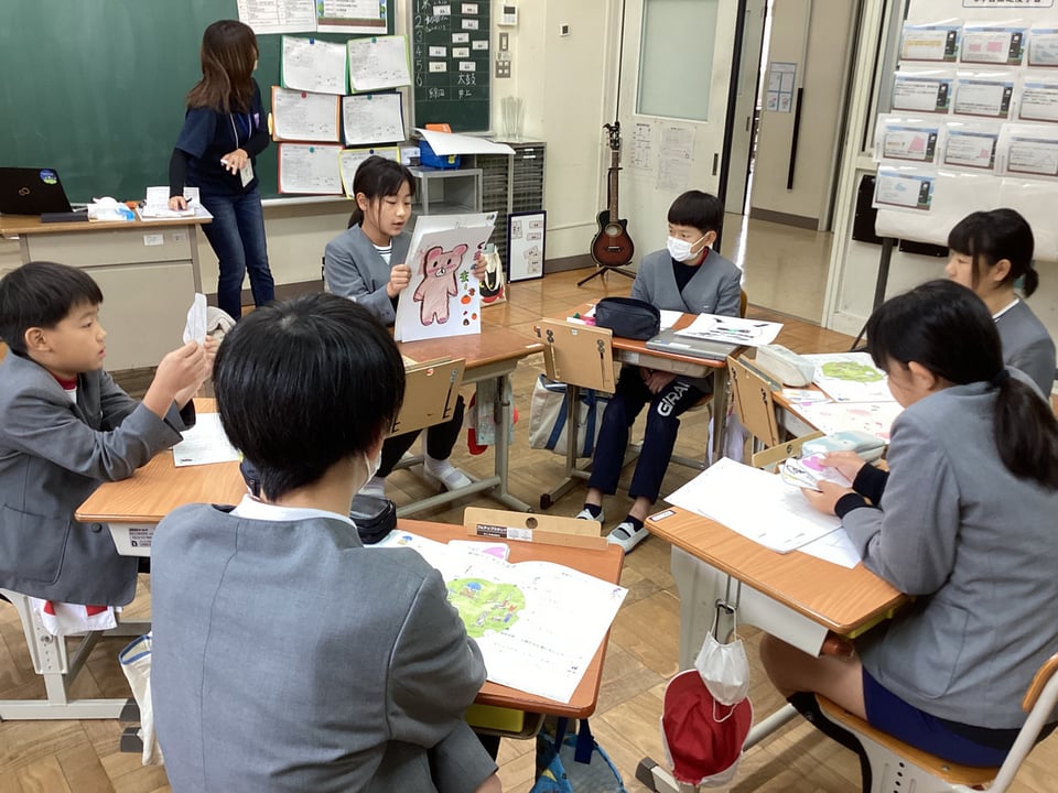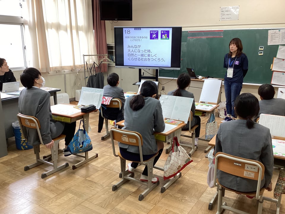 11月12日、5・6年生は環境教育出前講座「せかい動物かんきょう会議をしよう」の2日目を実施しました。まずはじめに、今回の「せかい動物かんきょう会議」の行い方の説明があり、実際に担当の方々がデモンストレーションを見せてくださいました。