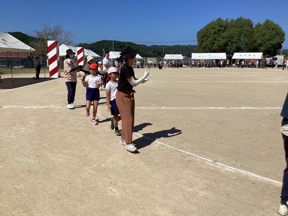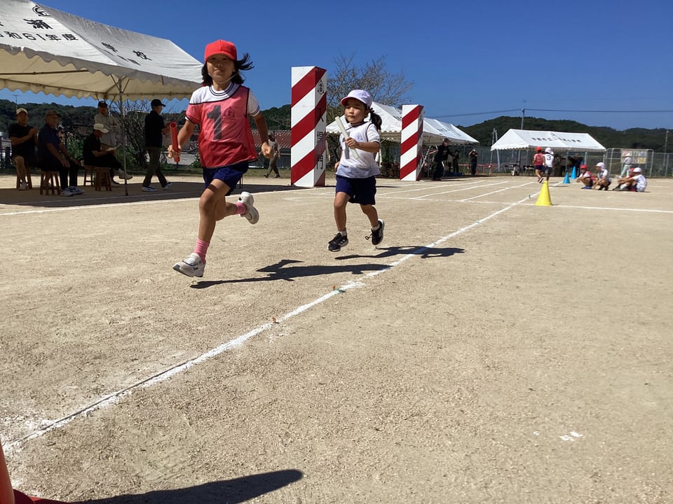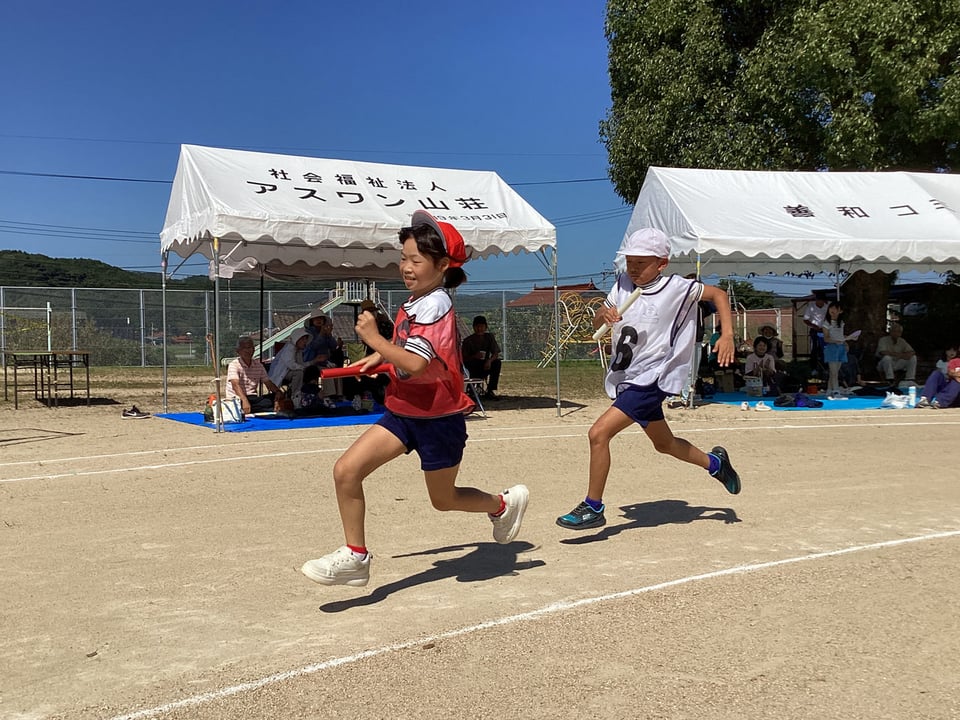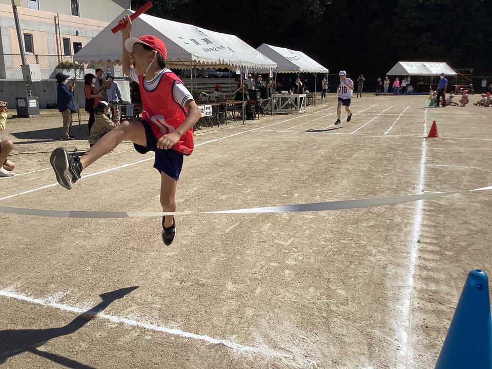 10月11日の学校・地域合同秋季大運動会の第6弾は、「赤白リレー」と「二俣瀬音頭」です。赤白リレーは、二俣瀬っ子全員でバトンをつなぐ「全員リレー」です。この種目も見ている方まで思わず力が入ってしまいます。最後までとてもいい勝負でした。みんなが最後まで全力でバトンをつなぎました。