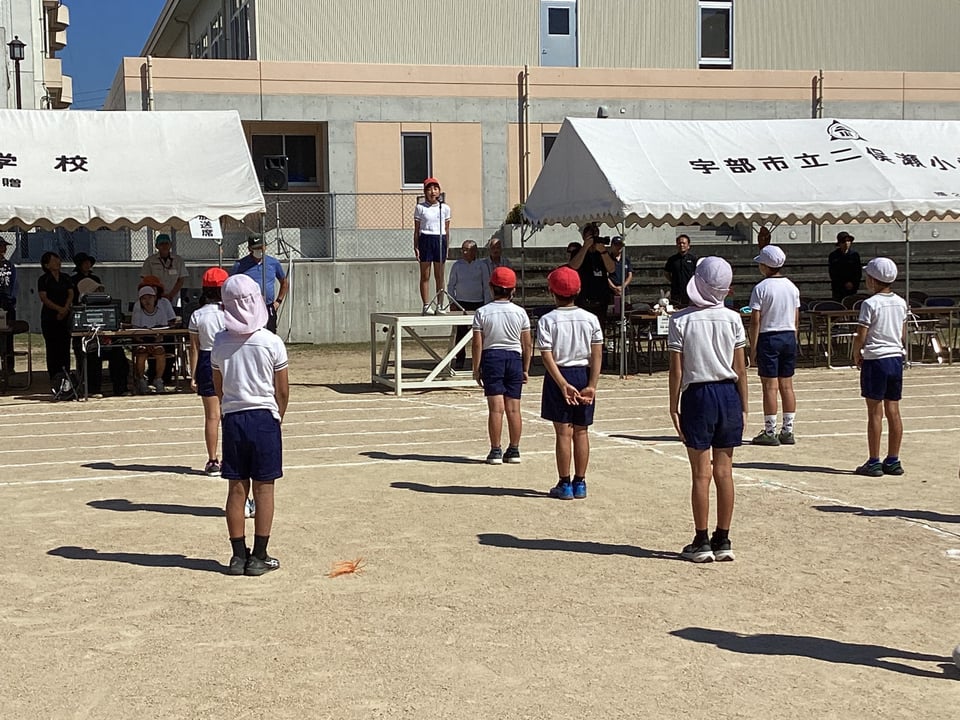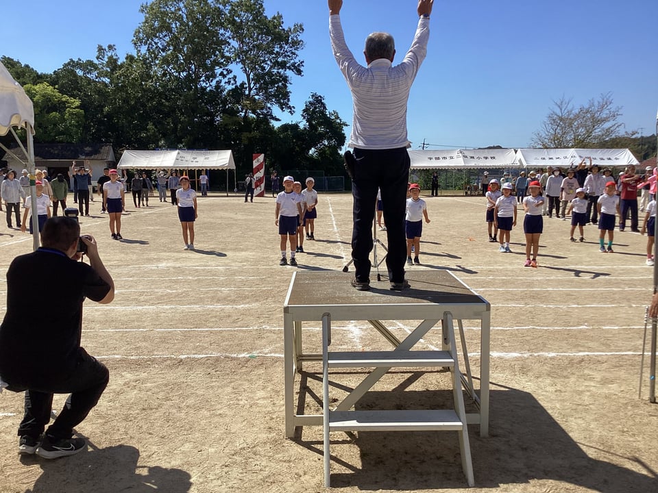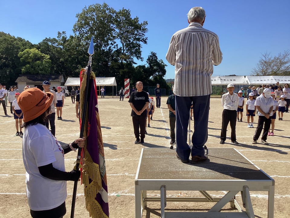 10月11日の学校・地域合同秋季大運動会の第7弾は、「終わりの体操」と「閉会式」です。雲一つない秋晴れのもと、ひたむきに・さわやかに運動に取り組んだ半日も、あっという間に過ぎていきました。「終わりの体操」でも、学校・地域全体で体を整えました。そして、閉会式では、地域の運動会実行委員会会長さんやコミュニティの会長さんより、子どもたちのがんばりをほめていただきました。何より立派だったのが、凛とした声で堂々と発表した「応援団のあいさつ」と、この運動会の振り返りを見事にまとめた「児童代表あいさつ」です。子どもたちの課題として「主体性」や「表現力」を挙げてきましたが、確実に子どもたちは力を付けている、成長している姿を目の当たりにしました。学校と地域の絆、子どもたち同士の絆が確実に深まった運動会となりました。保護者・地域の皆様方、運動会の事前の準備から、当日の協力や声援、そして、終わりの後片付けまで、本当にお世話になりました。ありがとうございました。